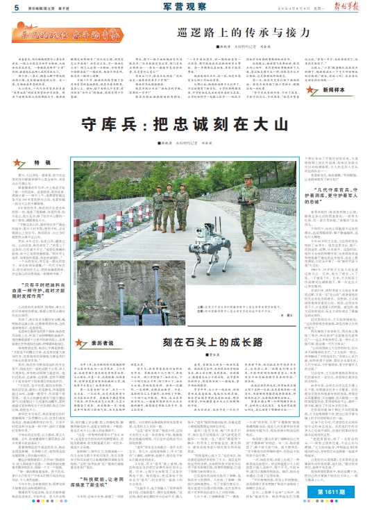 班長告訴我,這些字是一代代守庫兵留下的,他們把這些字刻在石頭上,也刻在心里。“就像我們蹲山守庫,不能用時間長短衡量意義,而要用實干和貢獻(xiàn)體現(xiàn)守庫兵的價值?!卑嚅L說。