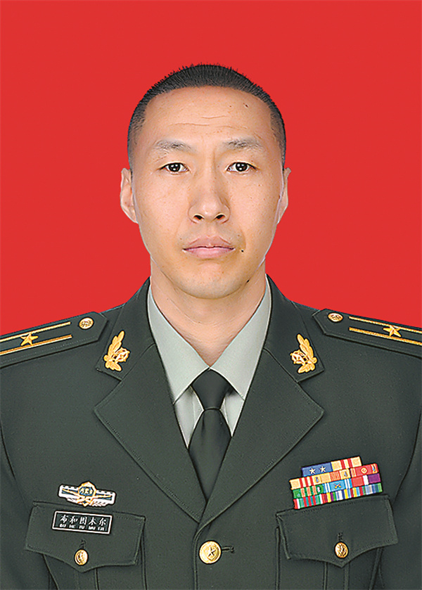 布和圖木爾,武警部隊內蒙古自治區總隊某支隊大隊長。男,蒙古族,1986年8月出生,2005年12月入伍,2007年9月入黨。該同志矢志扎根邊防、守衛邊防,愛民助民鞏固軍政軍民團結,參與抗洪搶險、火災救援等重大任務30余次,為維護邊疆安全穩定作出了積極貢獻。當選為十四屆全國人大代表,被表彰為“全國民族團結進步模范個人”,獲“新時代青年先鋒獎”,榮立二等功1次、三等功5次。
